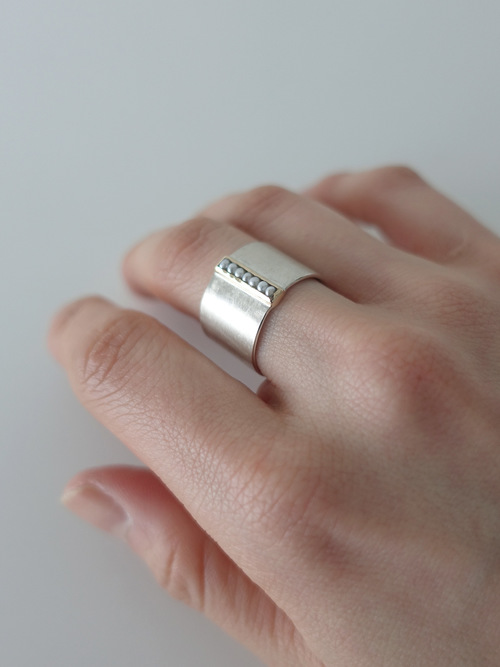 装着時は、パールのラインを指の中央に合わせたり、少し角度をずらすことでさまざまな表情をお楽しみいただけます。